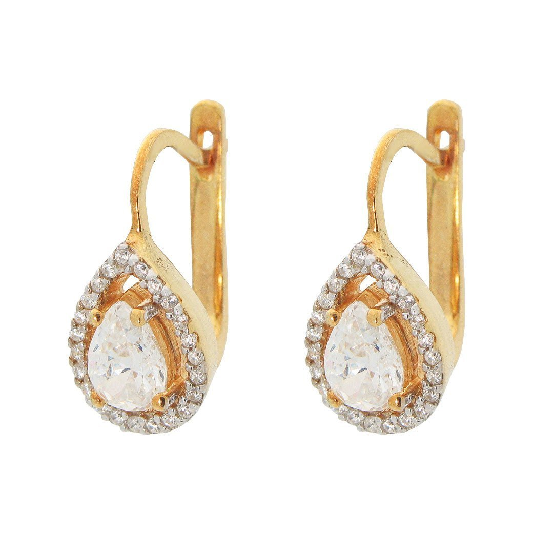 Large Earring Cubic Zirconia Marquise French Clasp 18k Gold Plated Sterling Silver